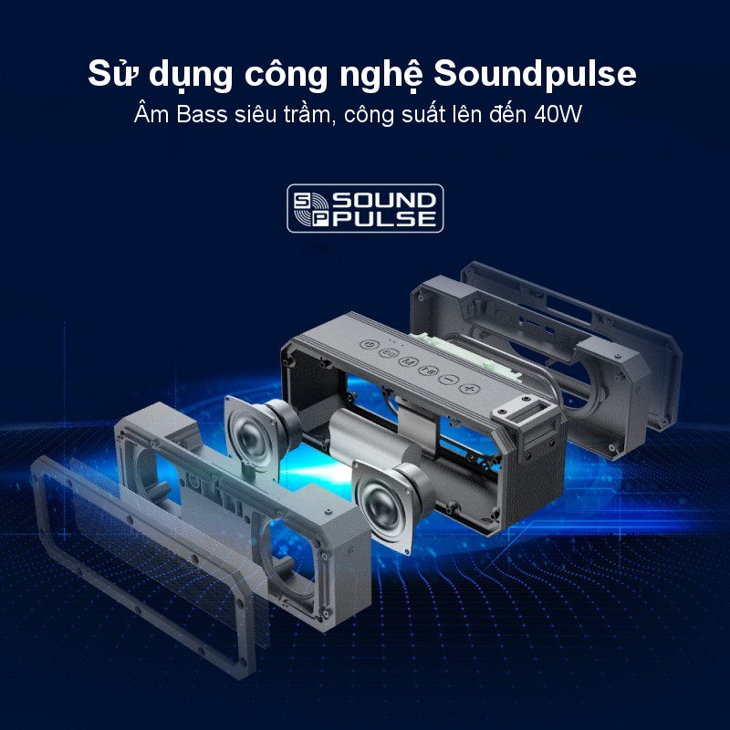 ✔️ Công nghệ SoundPulse độc quyền mang lại công suất tối đa 40W giúp âm bass trầm, sâu hơn và giọng hát rõ hơn.