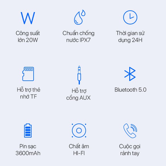 Thiết Bị Âm Thanh > Dàn âm thanh > Loa || Loa Bluetooth 5.0 VIVAN VS20 Chống Nước IPX7 20W 3600mAh Playtime 24HCòn hàng