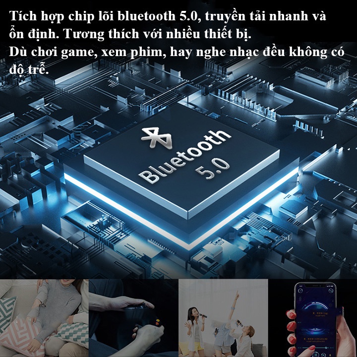 - Tích hợp chip lõi bluetooth 5.0, giúp âm thanh truyền tải nhanh và ổn định.