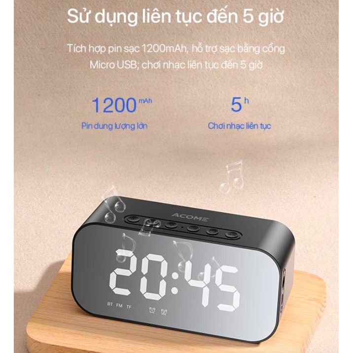 Loa Bluetooth 5W Màn Hình LED - Hỗ Trợ Mặt gương , Xem giờ, Đồng Hồ Báo Thức, nhiệt độ , nghe FM-ACOME A5-CHÍNH HÃNGHỗ Trợ Mặt gương, Xem giờ, Đồng hồ báo thức, Nhiệt độ , Nghe FM