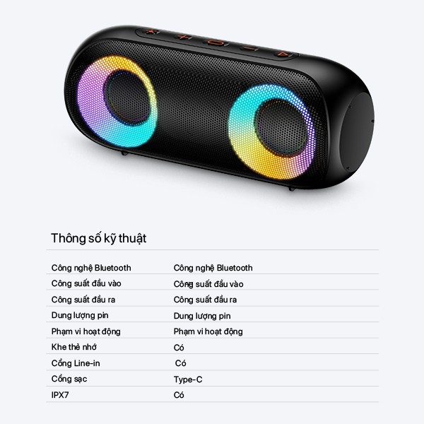 Thiết Bị Âm Thanh > Dàn âm thanh > Loa || [Mã ELMALL150 giảm 8% đơn 500K] Loa Bluetooth ACOME A20 Công Suất 20W Hiệu Ứng LED RGB Chống Nước IPX7 30H Sử DụngCòn hàng