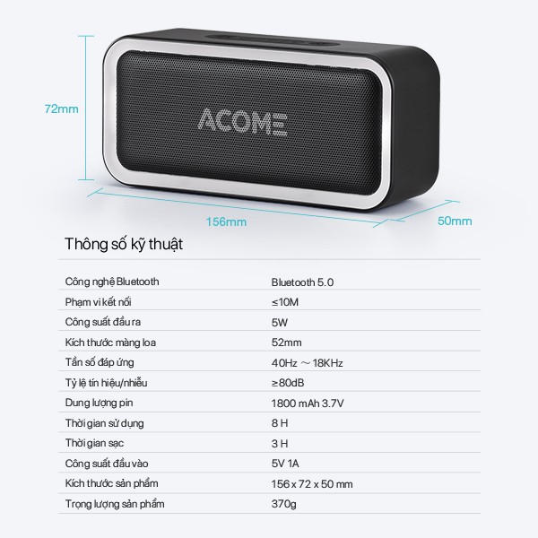 Giới thiệu Loa Bluetooth ACOME A6 / VS6 Công Suất 5W Âm Thanh Chất Lượng Cao Hiệu Ứng LED RGD Playtime 8H Chống Nước IPX5