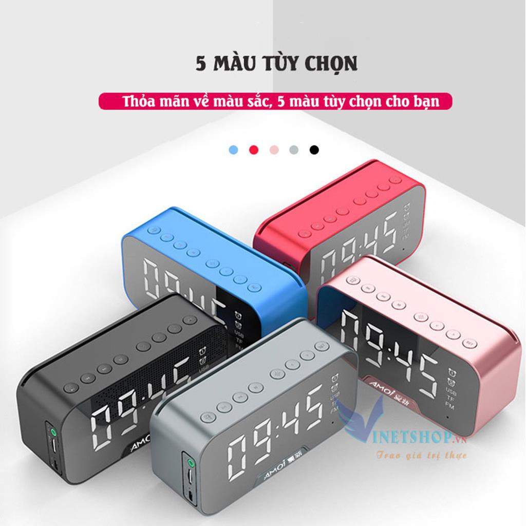 Loa bluetooth AMOI G5 /G10| Nghe đài FM kiêm đồng hồ báo thức | Màn hình soi gương | Vỏ kim loại -dc3651
