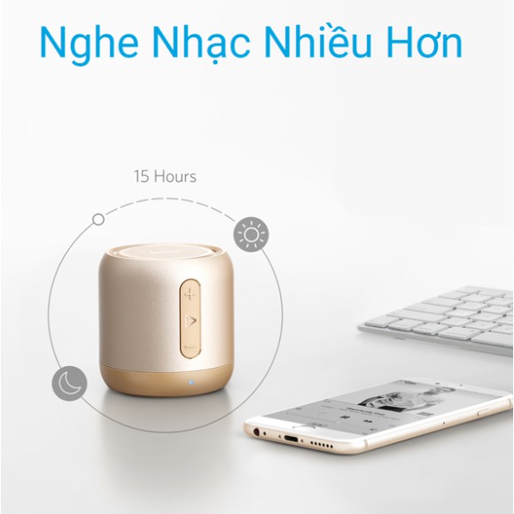 Công nghệ pin Anker cung cấp 15 giờ thời gian chơi liên tục cho 1 lần sạc, hơn gấp đôi các loại loa cùng loại.