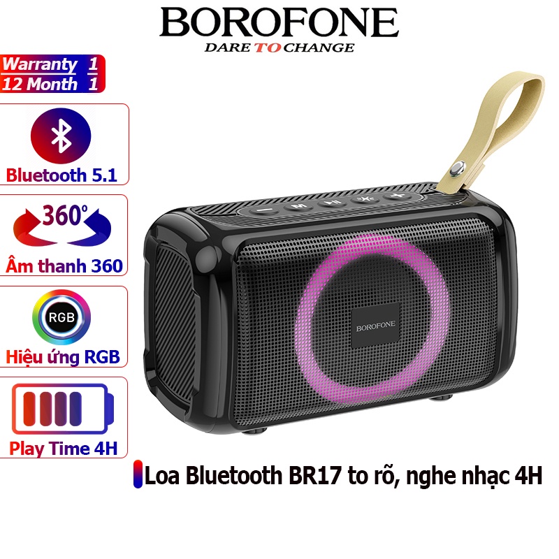 BOROFONE BR17 Loa không dây âm thanh tuyệt vời, BT V5.0, với pin 1200mAh, cho 4 giờ nghe gọi và nghe nhạc, hỗ trợ chế độ phát BT, FM, TF, AUX, TWSĐẶC ĐIỂM NỔI BẬT:
