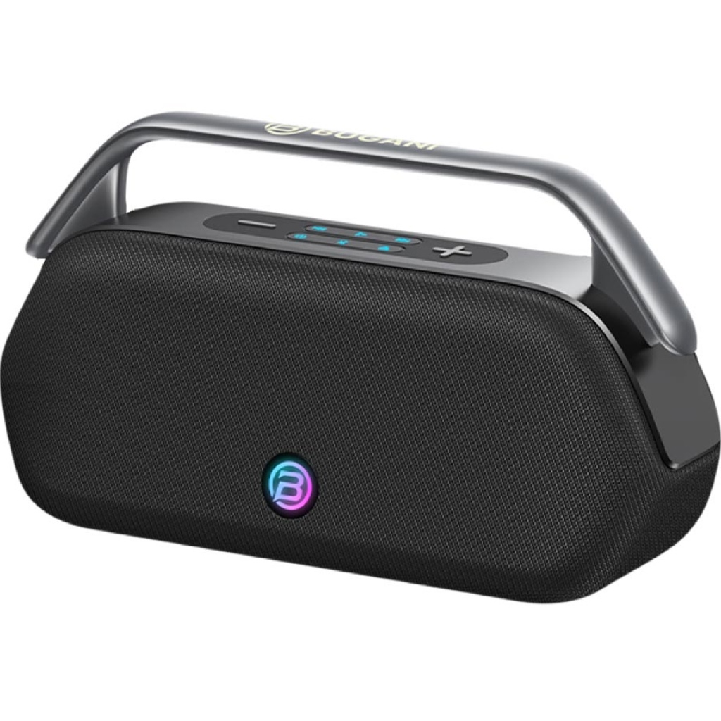 Thiết kế cao cấp và thời thượng, mang đến vẻ ngoài sang trọng và phong cách trẻ trung Kích thước 238 x 430 x 150mm, trọng lượng 5.6kg, có quai cầm chắc chắn tiện di chuyển Vỏ thùng loa bằng nhựa đặc chế, tối ưu âm học, chịu lực tốt và hạn chế trầy móp Đường nét bo tròn cá tính, tạo cảm giác thân thiện, thoải mái khi cầm nắm sử dụng Lưới che bảo vệ bằng vải sợi chuyên biệt, có khả năng kháng bụi và chống nước hiệu quả Logo đèn RGB phát sáng dưới lưới loa, chuyển màu đẹp mắt theo nhịp phát nhạc