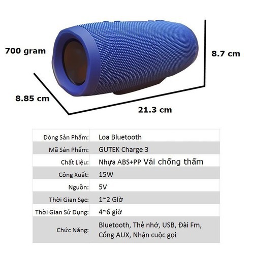 ✅THÔNG SỐ KỸ THUẬT LOA BLUETOOTH CHARGE 3 MINI: