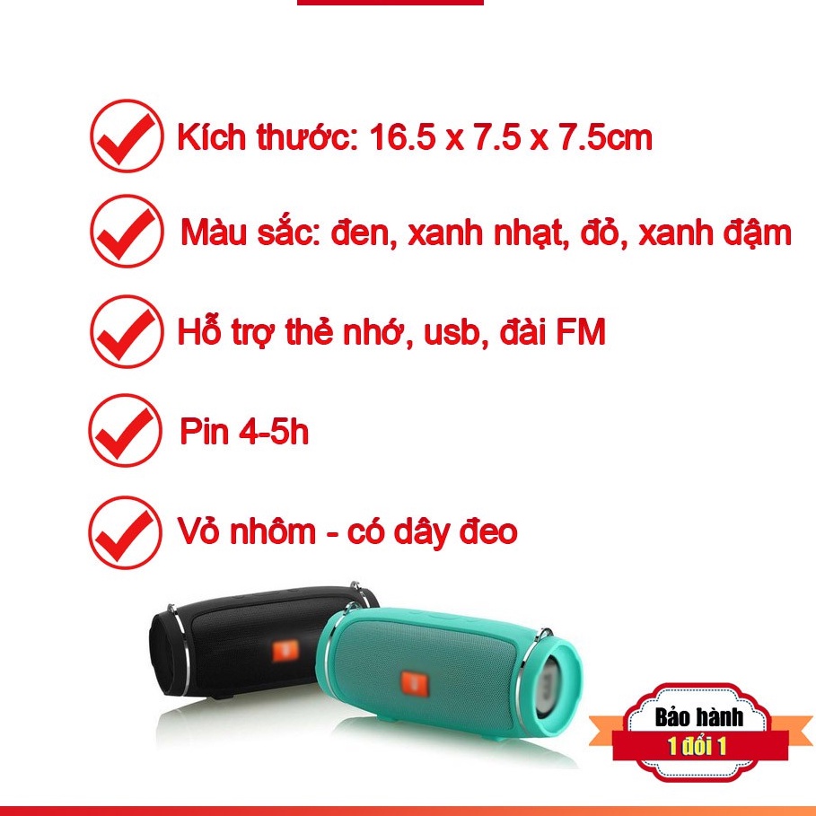 Giới thiệu Loa bluetooth charge 4+ mini Bass mạnh, âm thanh trong, Pin 3- 4h có dây đeo, hỗ trợ thẻ nhớ, Usb