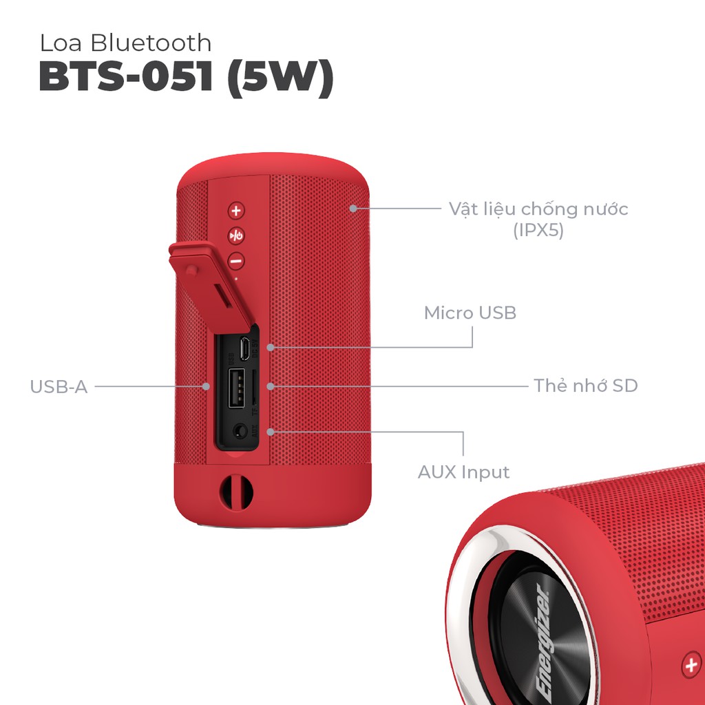 Giới thiệu Loa Bluetooth Energizer BTS 051 - 5W, bluetooth V4.2, kháng nước IPX5 - Hàng Chính Hãng, Bảo Hành 2 Năm 1 Đổi 1