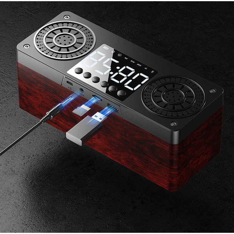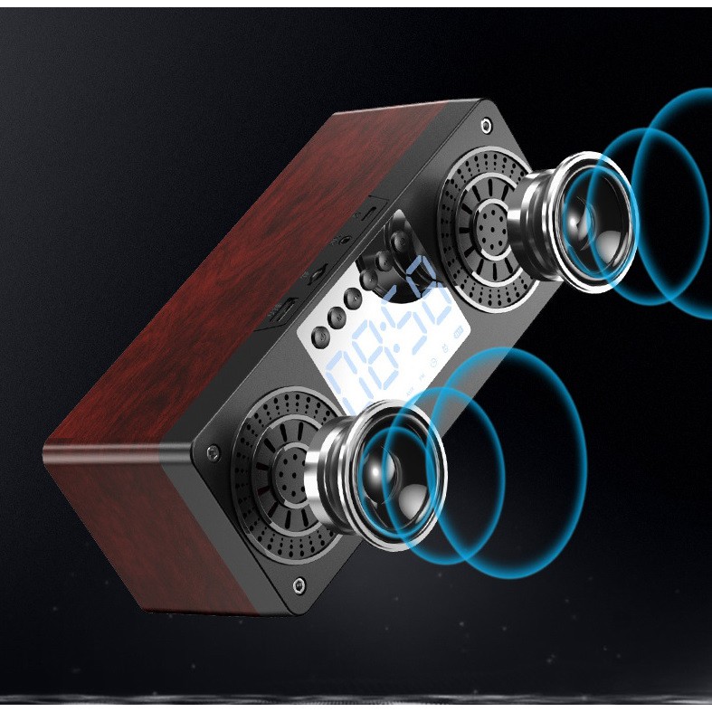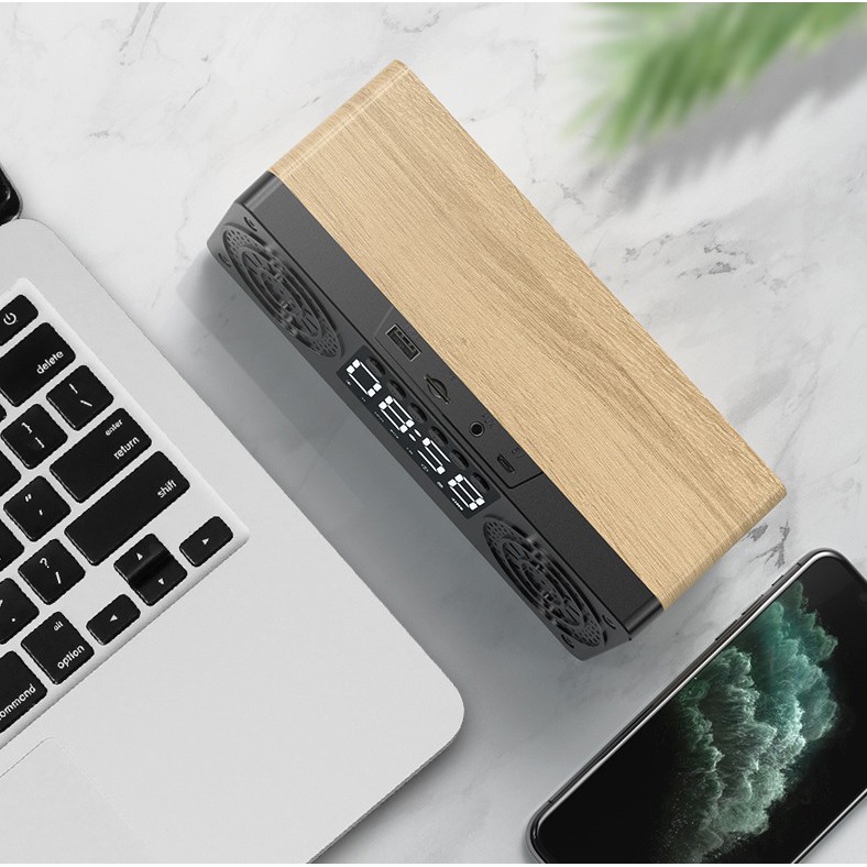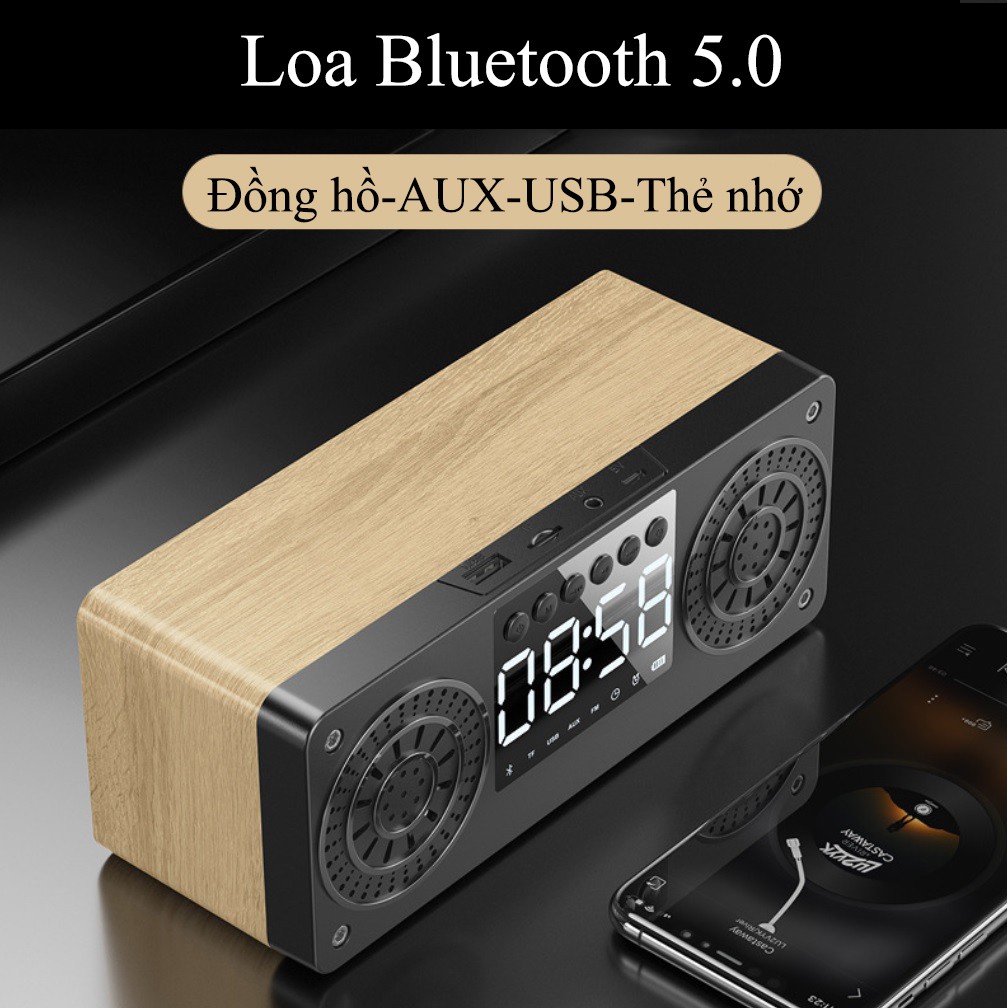 Loa Bluetooth gỗ 5.0 không dây A10 tích hợp đồng hồ báo thức , màn hình LED, hỗ trợ thẻ nhớ, USBĐặc điểm nổi bật: