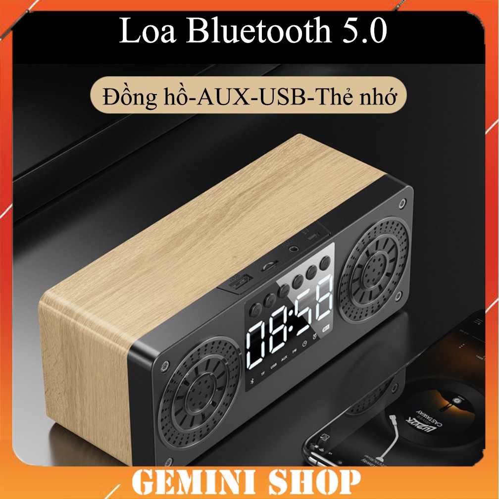 Giới thiệu Loa Bluetooth gỗ 5.0 không dây A10 tích hợp đồng hồ báo thức , màn hình LED, hỗ trợ thẻ nhớ, USB GEMINI SHOP