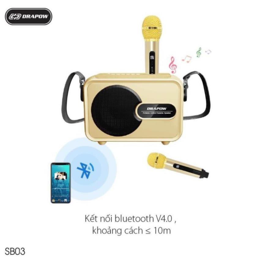 Loa Bluetooth hát Karaoke Drapow SB02 kèm 2 Micro kết nối điện thoại di động không dây cỡ lớn mini để bàn nhỏ gọn giá rẻ