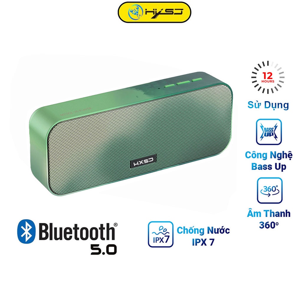 -Âm thanh Bass cực lớn Âm thanh là ưu điểm của HXSJ V6 so với nhiều bộ loa không dây cùng kiểu cỡ. Hệ thống loa công suất 5W x 2. Thiết kế này đem đến cho sản phẩm khả năng thể hiện âm trầm rất tốt so với các bộ loa di động khác. Bass sâu, mềm nhưng không loãng.