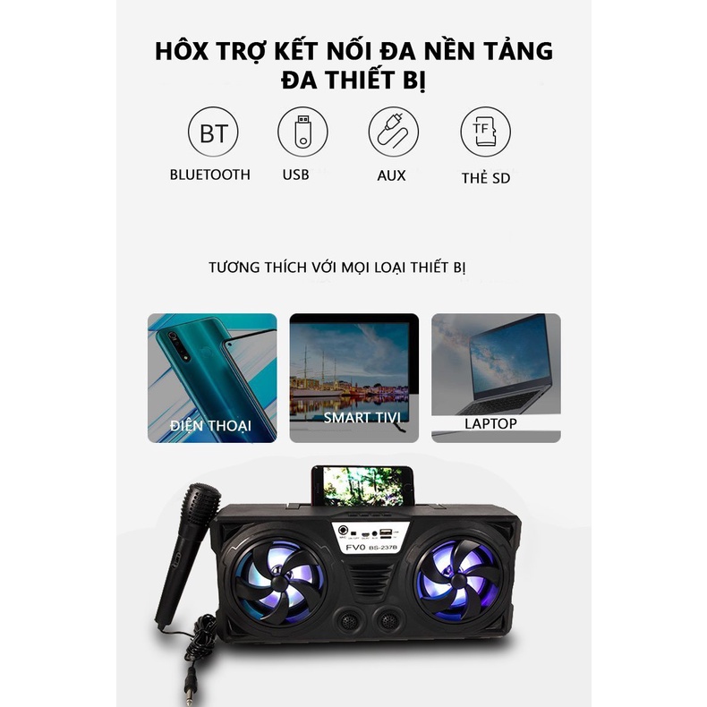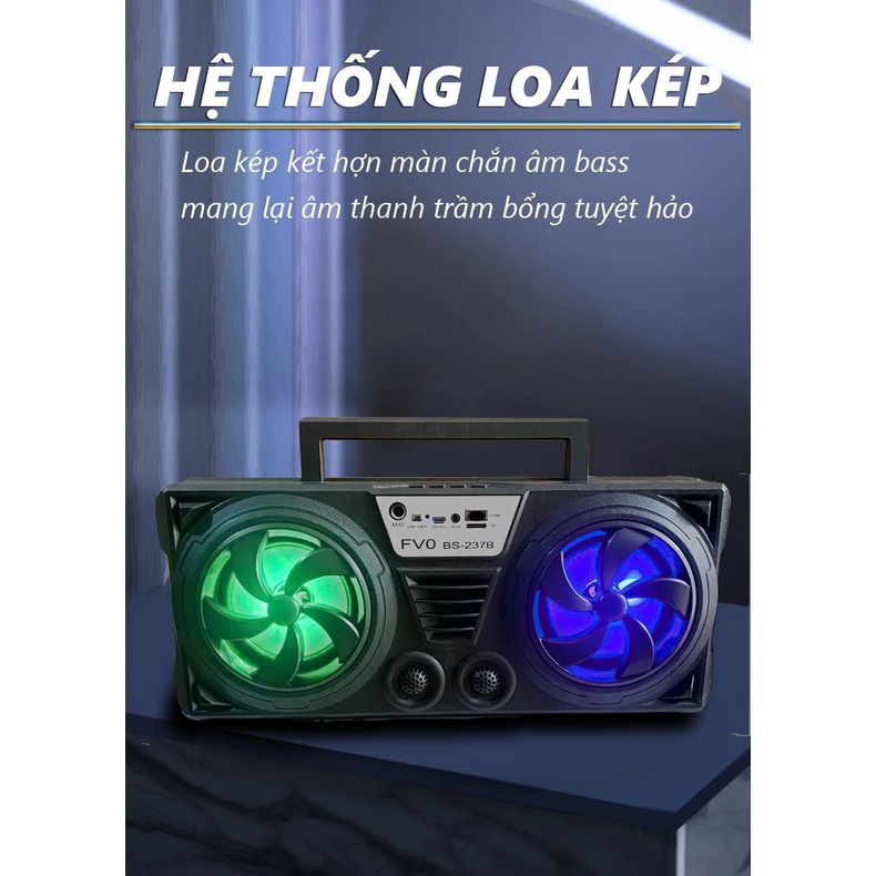 Loa bluetooth karaoke Bs 237 có hệ thống loa kép kết họp màng chắn âm bass mang lại âm thanh trầm bổng tuyệt hảo