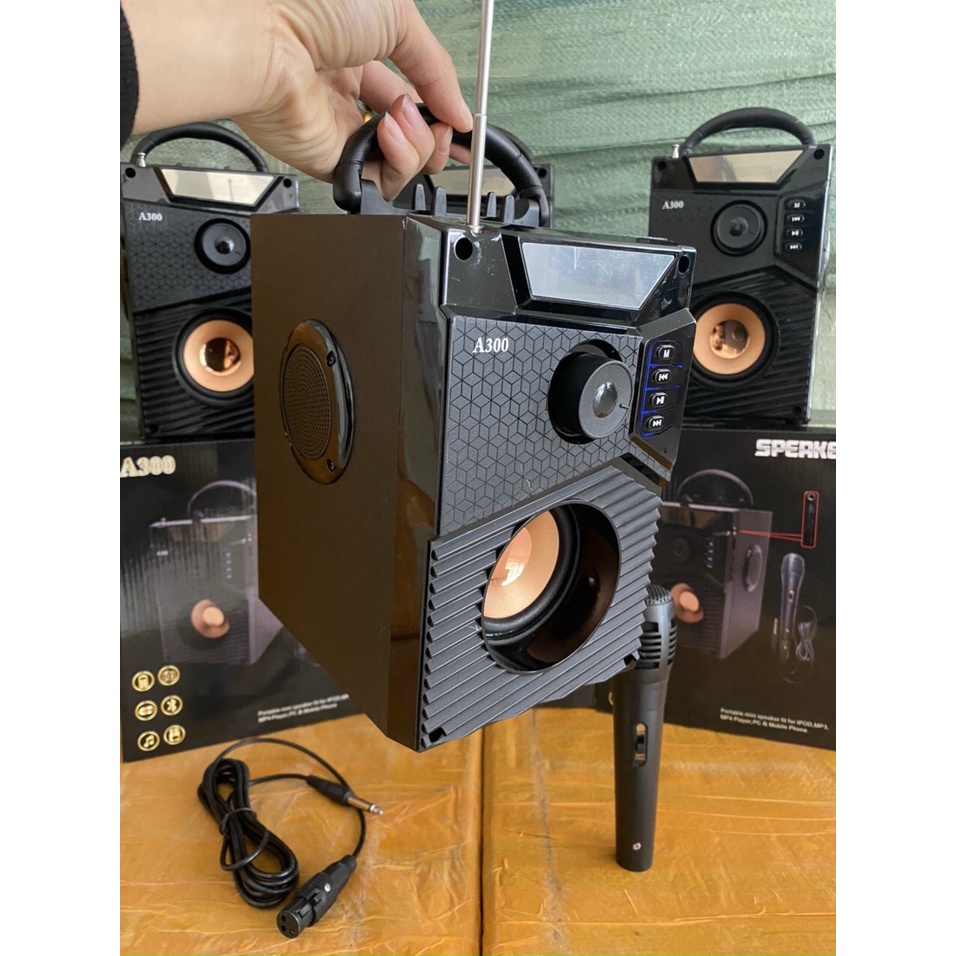 Loa bluetooth karaoke mini mới A300 công suất lớn không dây có mic âm thanh siêu hay bass khỏe Bảo hành 1 đổi 1 6 tháng