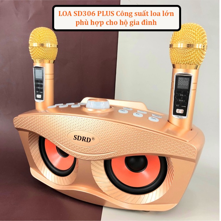 Loa Bluetooth Karaoke SDRD SD306 Plus bản 2020 đa năng, Loa kèm 2 micro hát karaoke Không dây- Phiên Bản Nâng Cấp lọc