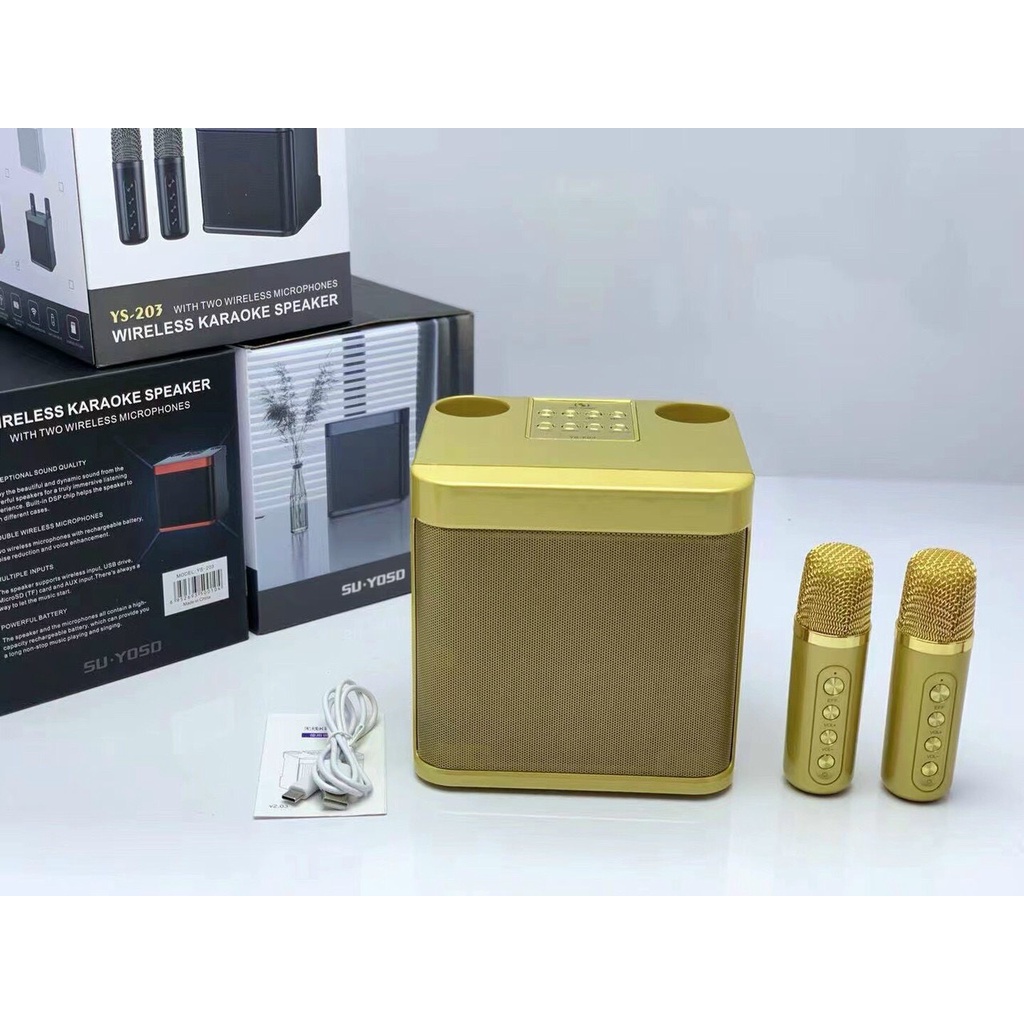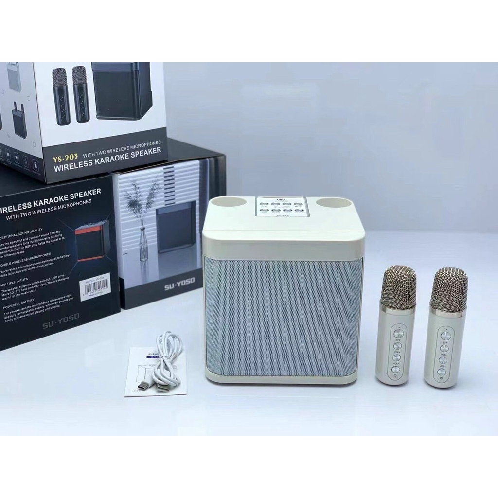 Loa bluetooth karaoke Su-Yosd YS-203 - Tặng kèm 2 micro không dây - Hiệu ứng đổi giọng, điều chỉnh echo, reverb, effect.