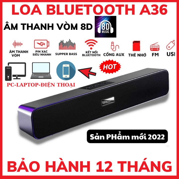 Loa Bluetooth Không Dây Cao Cấp A36 PRO BASS 2022-Âm Thanh Nghe Nhạc Siêu Đã Tương Thích Điện Thoại Máy Tính Laptop Tivi