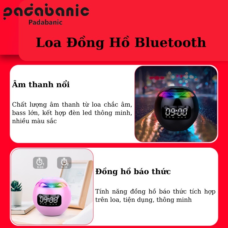 Giới thiệu Loa Bluetooth Không Dây Kết Nối Điện Thoại Kiêm Đồng Hồ Padabanic G9S Hình Tròn Đèn LED