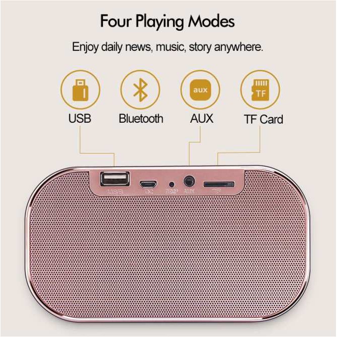 5. Dung lượng pin lớn 1800mAh cho phép chơi nhạc 8 giờ liên tiếp (tùy âm lượng). Chơi nhạc từ TF card, AUX, nó có thể đáp ứng nhu cầu của bạn bất cứ khi nào, nghe đài FM, tự động tìm kiếm, sạc trong 3h và sử dụng được trong 8h, nếu sử dụng đồng hồ thời gian sử dụng lên tới 72h.