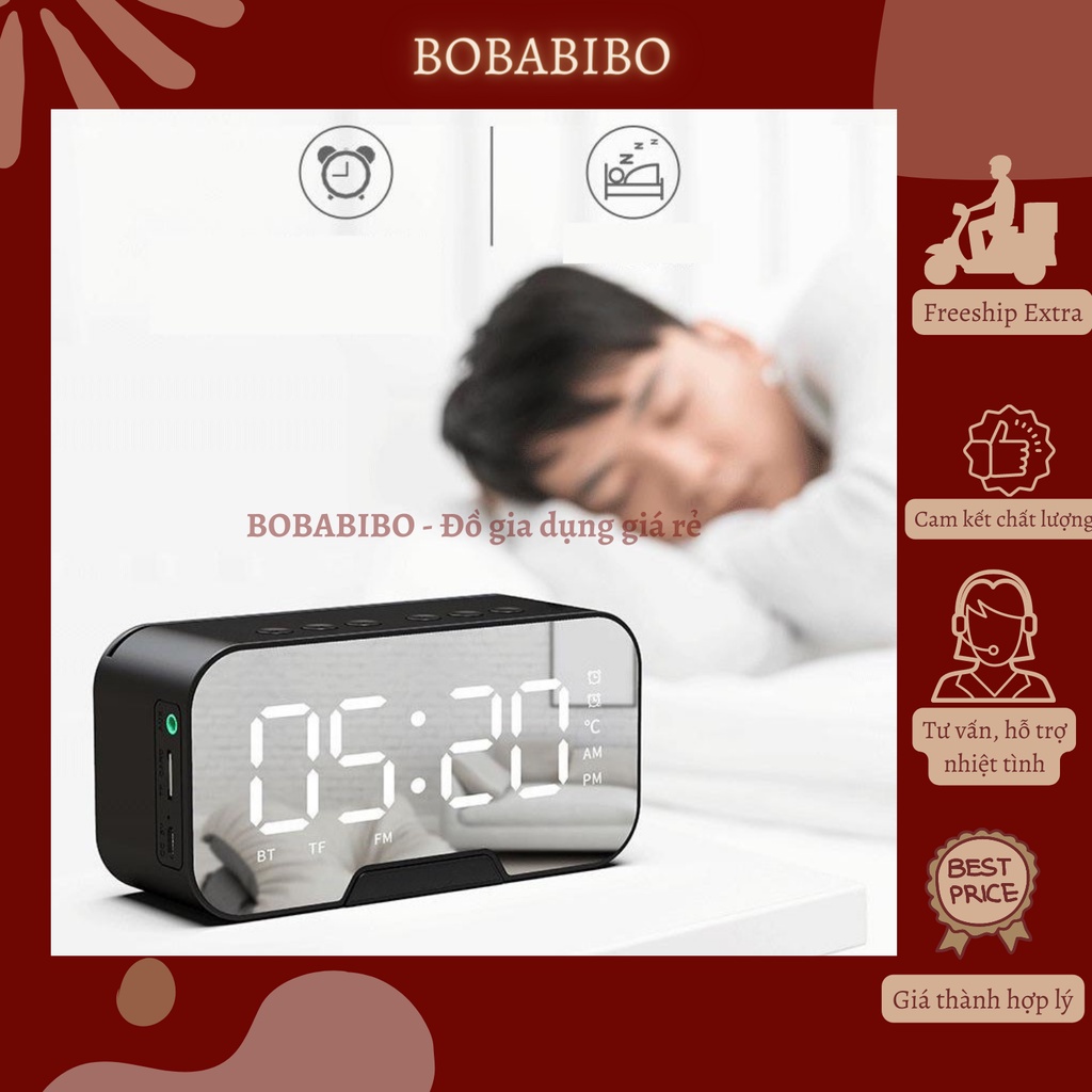 Loa Bluetooth Kimiso K10 Plus Cao Cấp Kèm Đồng Hồ Báo Thức, Loa Bluetooth Mini Màn Hình Tráng Gương Đồng Hồ Led Bobabibo