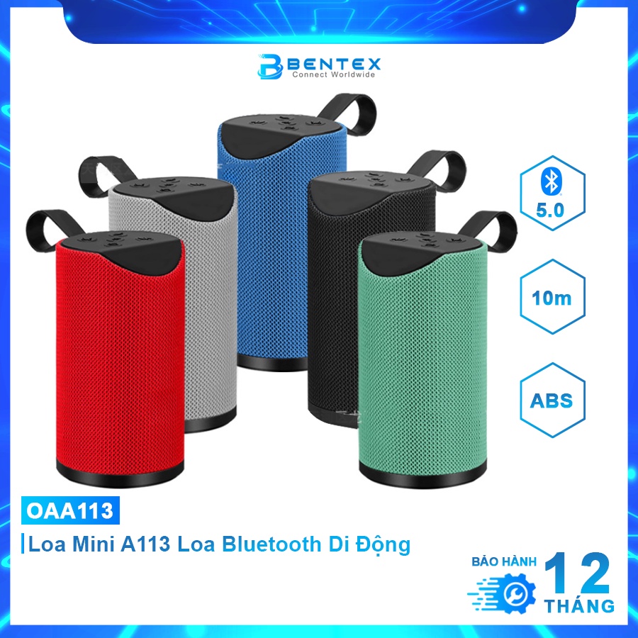 - Loa Bluetooth Mini A113 Bentex mang đến sự hài lòng cho khách hàng từ hình thức đến âm thanh. Thiết kế đẹp mắt tinh tế nhỏ gọn, vỏ bọc được phủ sơn chống thấm, màng loa kim loại giúp tăng tuổi thọ và sự bền bỉ