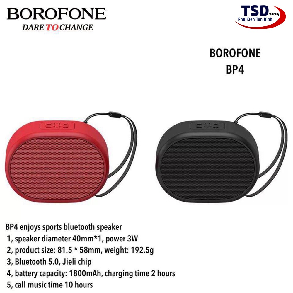 Hãng Borophone là một hãng mới mẻ đến từ thị trường Trung Quốc , với chất lượng âm thanh cũng như nhiều tính năng cùng mới mức giá thành cực hạt rẻ , đem lại cho người dùng cực kì nhiều tiện ích và những giây phút thư giãn thoải mái và hãng đã cho ra mắt sản phẩm Loa bluetooth Borophone BP4