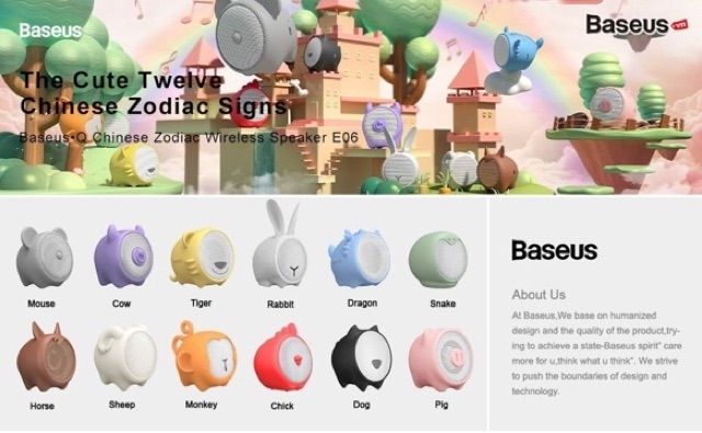 Giới thiệu Loa Bluetooth Mini hình 12 Con Giáp siêu dễ thương Baseus Q - Chống nước - Bluetooth 5.0