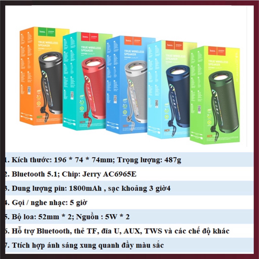 Loa bluetooth mini HOCO HC9 loa không dây mini bluetooth chính hãng âm thanh hay to rõ không rè - SATOPA OFFCIALHoco là thương hiệu phụ kiện thiết bị kỹ thuật số đến từ công ty HOCO TECHNOLOGY (SHENZHEN) Co.,Ltd của HongKong (Được thành lập từ năm 2009).
