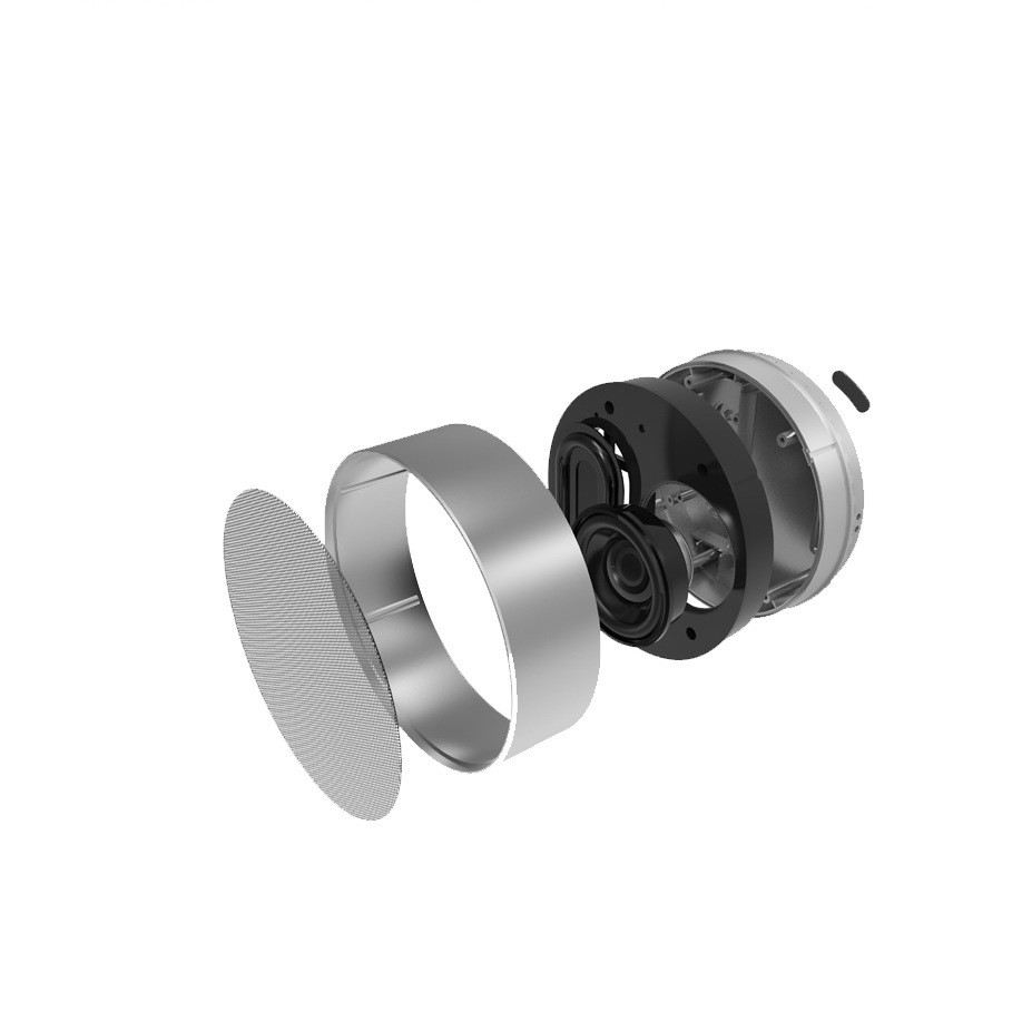 Với một thiết kế đơn giản nhưng mang lại sức hút lớn. Phần trên là mặt lưới loa với viền kim loại bạc. Xung quanh được làm bằng kim loại được phủ một lớp sơn nhám min cầm vô cùng mát tay. Với các nút bấm được thiết kế bên dưới loa rất đơn giản. Các chức năng được gói gọn chỉ trong 3 nút điều chình.