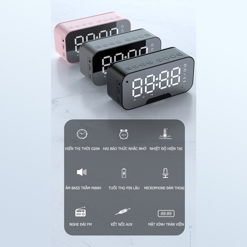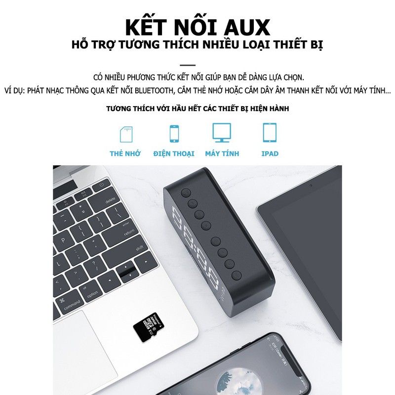 Loa bluetooth mini kèm đồng hồ báo thức - Loa Bluetooth