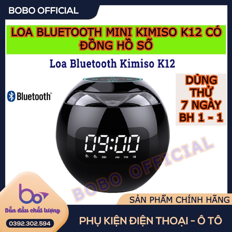 Loa bluetooth mini KIMISO K12 có đồng hồ số hiển thị cài đặt báo thức tiện ích, thiết kết sang trọng 2021 - BH 1 ĐỔI 1