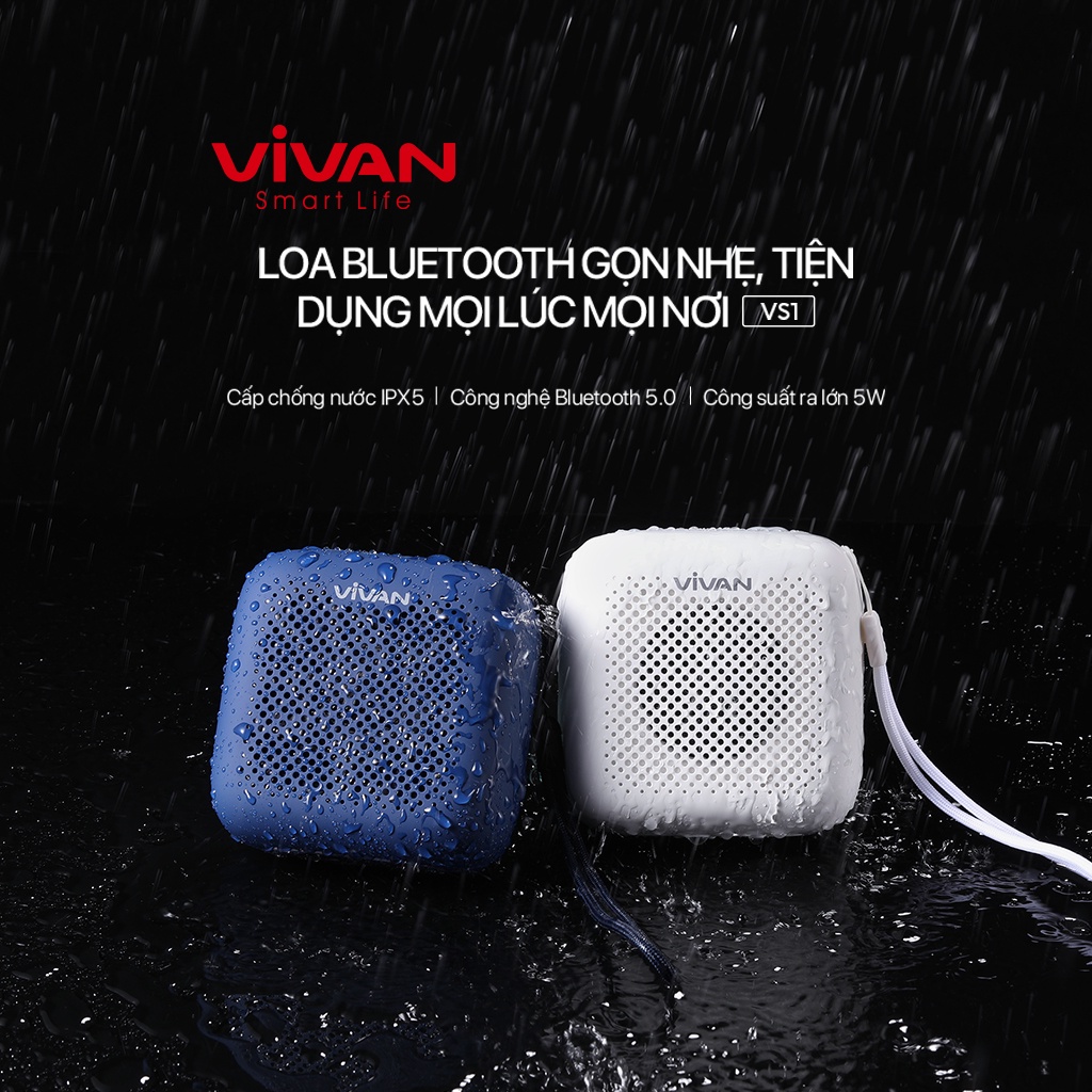Loa Bluetooth Mini Nhỏ Gọn Tiện Lợi 5.0 VIVAN VS1 Chống Nước Âm Thanh Sống Động Hỗ Trợ Thẻ SD & USB Hàng Chính Hãng