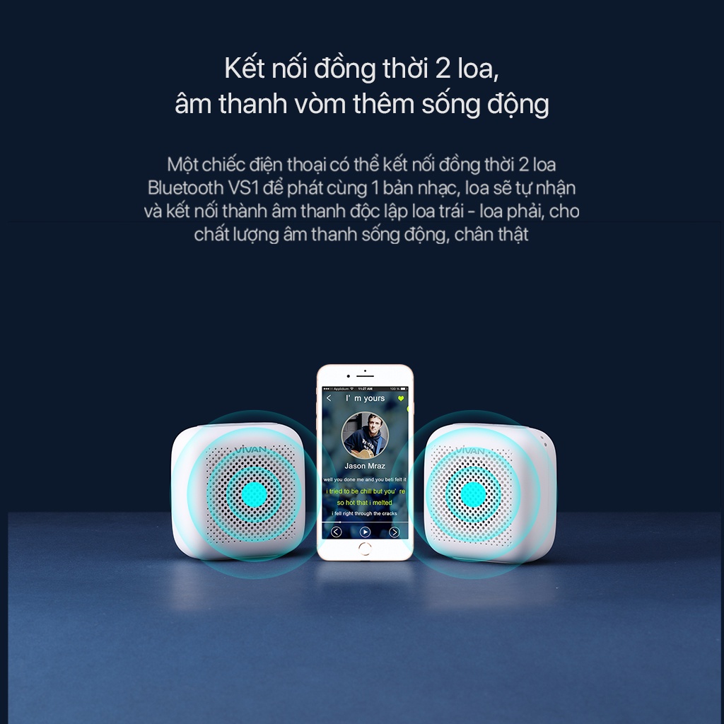 ✔Có thể cùng lúc kết nối 2 loa Bluetooth VS1 với nhau