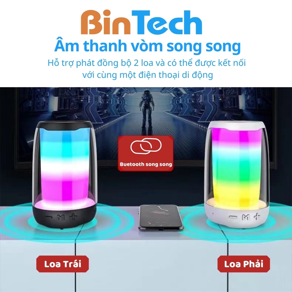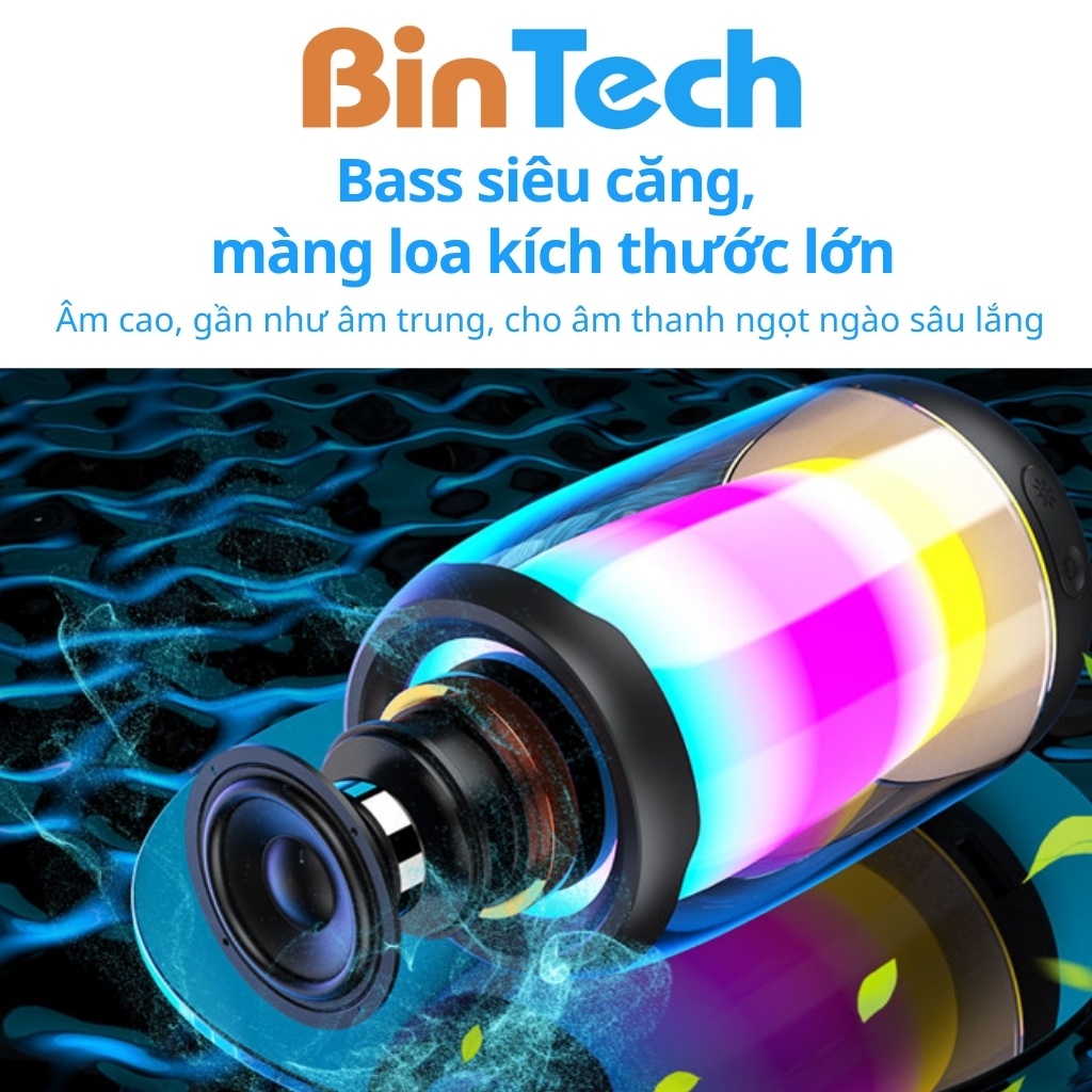 Loa bluetooth mini Pulse 4 BINTECH âm bass căng có dải led đổi màu độc lạ pin phủng, chống nước