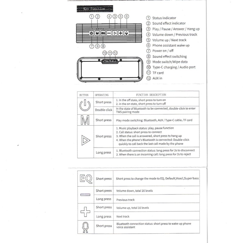 Chức năng: EQ, Default, Voacl, Supper Bass (chức năng này không mở sẵn để mở chức năng này nhấn nút EQ trên loa)