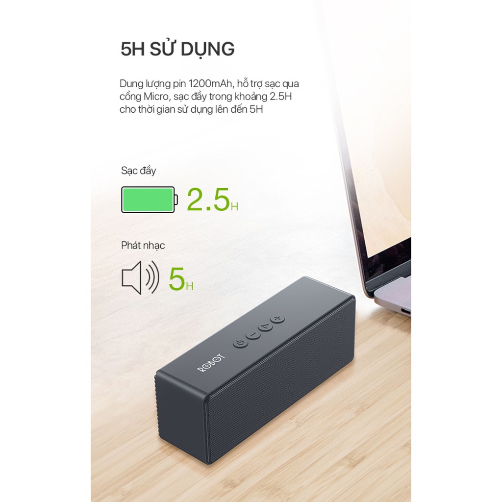 ✔ Dung lượng pin lớn 1200mAh và công nghệ sạc thông minh, loa chỉ cần 3 giờ để sạc đầy nhưng thời gian nghe nhạc lên đến 5 giờ