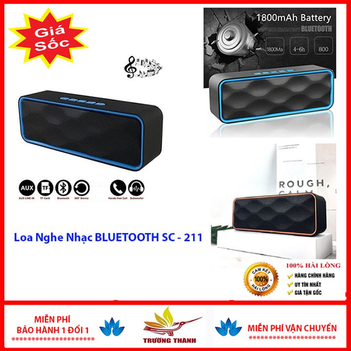 - Loa di động SC211 sử dụng kết nối không dây Bluetooth 5.1(khoảng cách 10m đến 15m), hỗ trợ Jack 3.5mm cắm các thiết bị nghe nhạc, hoặc máy tính sách tay hoặc để bàn, cổng cắm thẻ nhớ, cổng cắm USB.