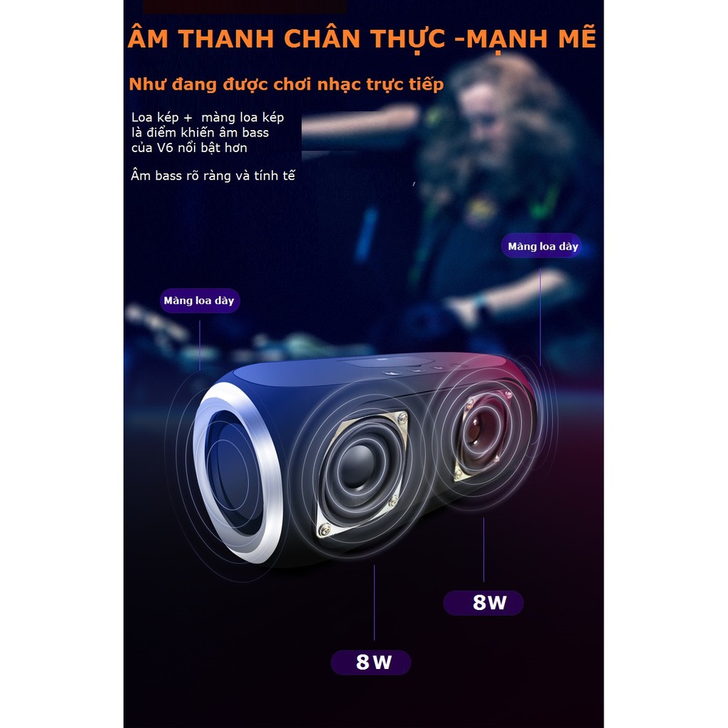 Loa Bluetooth Siêu Bass V6 Không Dây Công Suất Lớn Có Giá Đỡ Điện Thoại, hỗ trợ usb thẻ nhớ và cổng aux 3.5