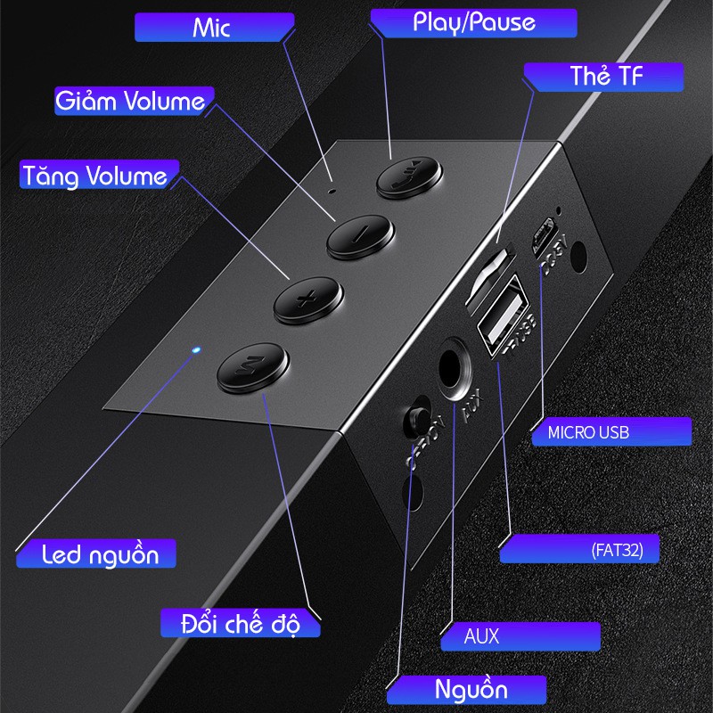 - Hỗ trợ: Jack 3.5mm, USB, Thẻ nhớ, FM, AUX