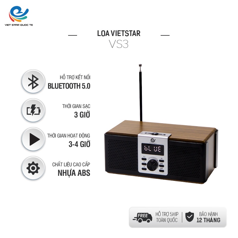Giới thiệu Loa bluetooth Việt Star Quốc Tế VS-3 5.0 màn hình LED-,sạc nhanh trong 3 giờ-sử dụng 4 giờ- pin 600mA-Bảo Hành 12 Tháng