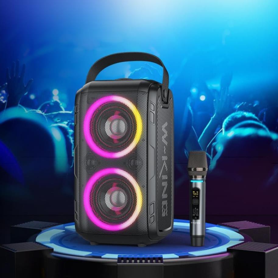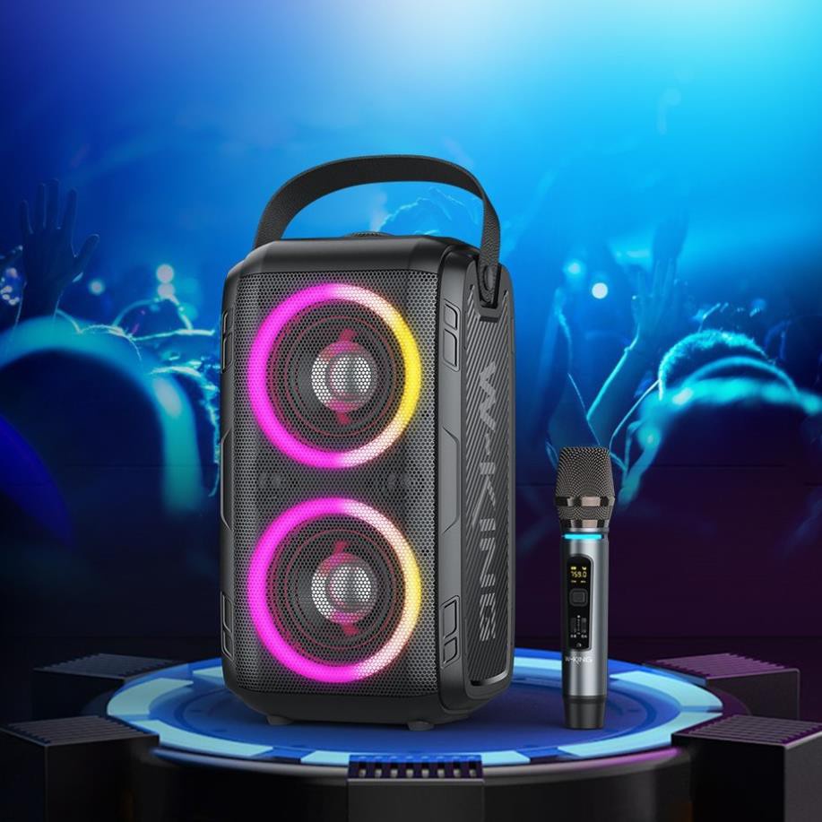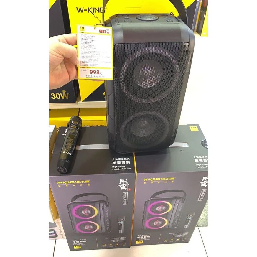 Loa Karaoke W-King T9:Loa Karaoke W-King T9 là một chiếc loa di động mạnh mẽ với chất lượng âm thanh đỉnh cao, sở hữu hệ thống đèn LED RGB ấn tượng với 6 loại hiệu ứng ánh sáng sống động. Thiết bị trang bị pin sạc 10000MAh, bạn có thể mang bữa tiệc đi khắp mọi nơi.