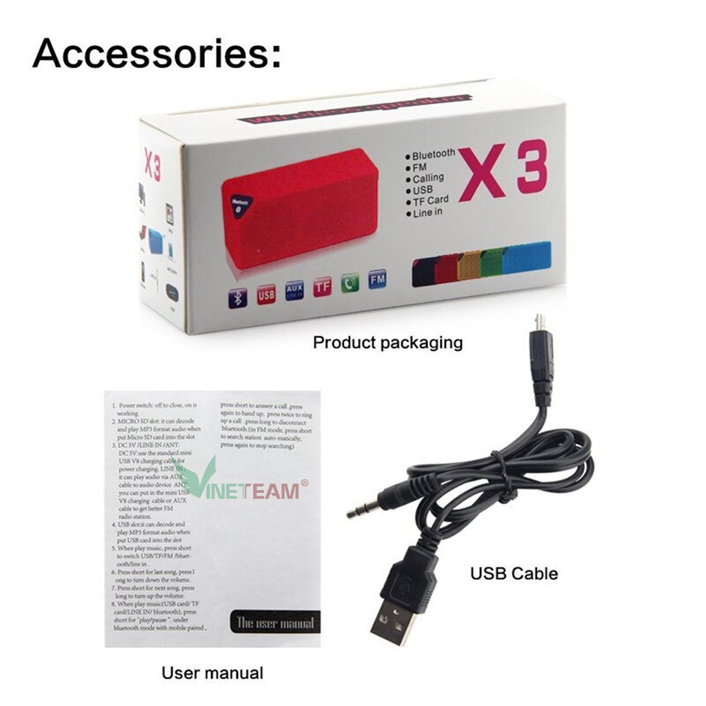 💥 Tên sản phẩm: Loa Bluetooth Wireless Speaker X3 - Hàng nhập khẩu -dc1261