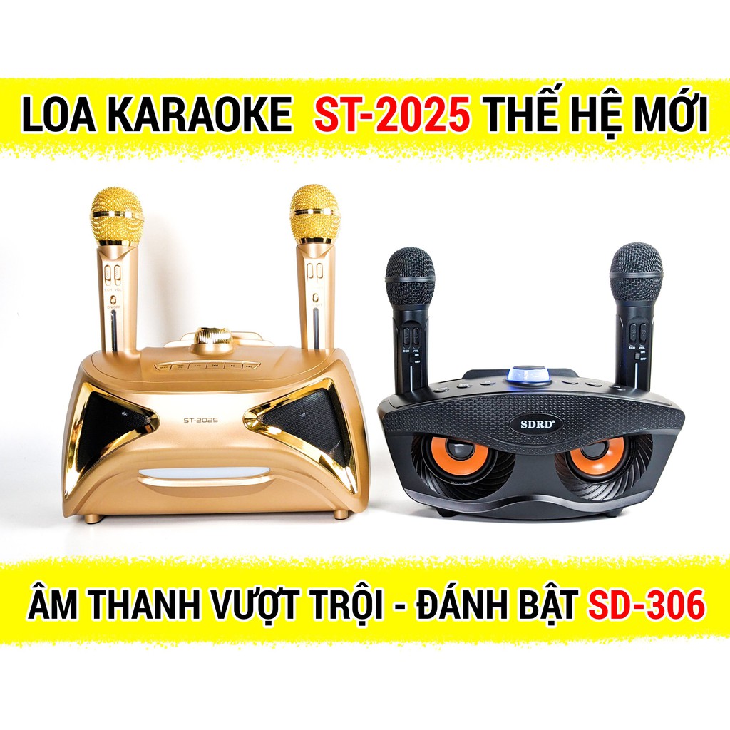 Loa Bluetooth Karaoke ST 2025 được thiết kế theo nhỏ gọn, đẹp và sang trọng, kèm 2 micro ST 2025 đem lại trải nghiệm âm thanh tuyệt vời.