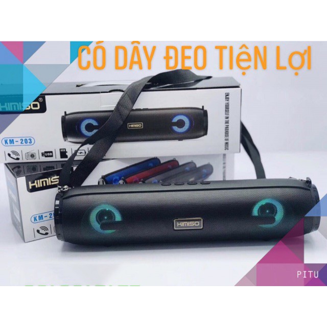 - Loa bluetooth siêu bass kimiso KMS-203 được trang bị thêm quai xách chắc chắc giúp bạn có thể mang theo đi du lịch, dã ngoại, tham quan, phượt cùng bạn bè và người thân