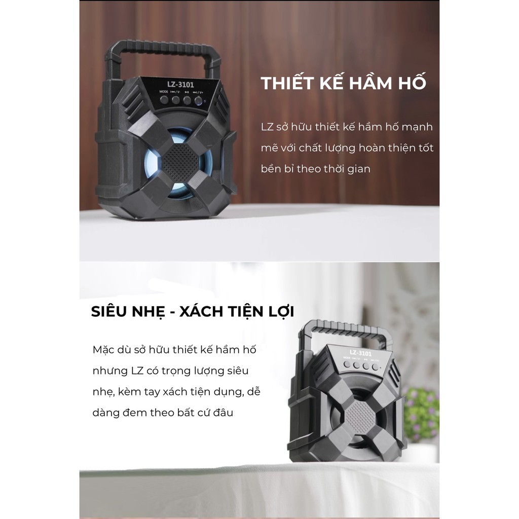 Loa Bluetooth xách tay Lz3101 nhỏ gọn, đèn led nhấp nháy,Hỗ trợ cắm thẻ nhớ, USB CaseAlpha🔐Chế độ bảo hành, đổi trả sản phẩm.
