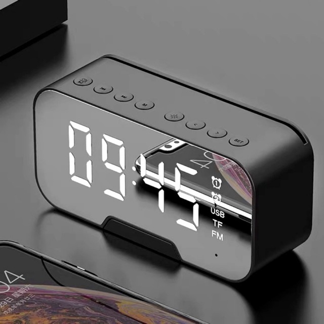 Loa Blutooth đồng hồ G10 kiêm Đài FM - Đồng Hồ Báo Thức 3 trong 1 Mặt gương hiển thị đèn led