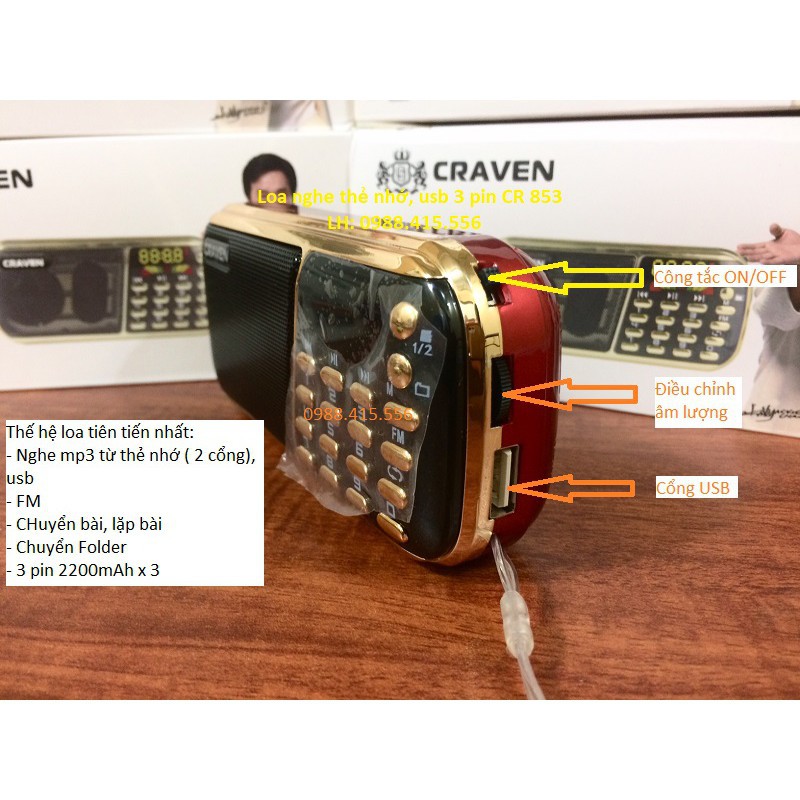 Loa Craven 3 Pin siêu khỏe, nghe tiếng Anh, Phật pháp, đài FM, thẻ nhớ