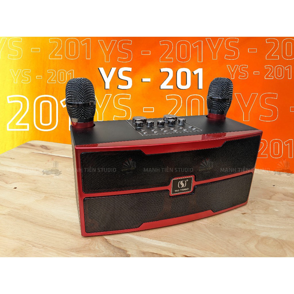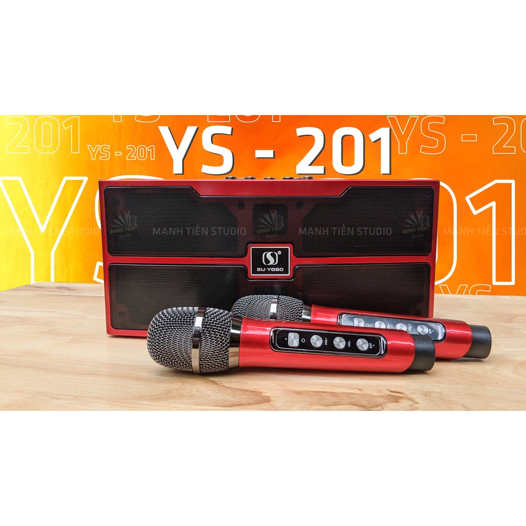 • Trang bị hai micro không dây hiện đại: Kèm theo loa YS 201 plus là cặp micro không dây tiện lợi, trang bị các phím chức năng điều khiển trực tiếp trên thân mic như bật/ tắt, echo, volume, kèm theo các hiệu ứng đổi giọng, tách lời...