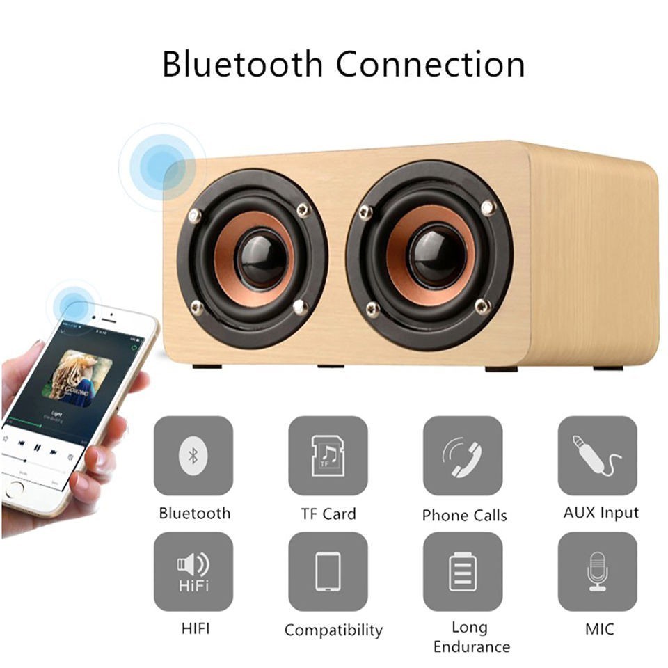 Loa gỗ bluetooth hỗ trợ đọc thẻ nhớ âm thanh nổi HIFI siêu trầm W5Thiết kế cao cấp